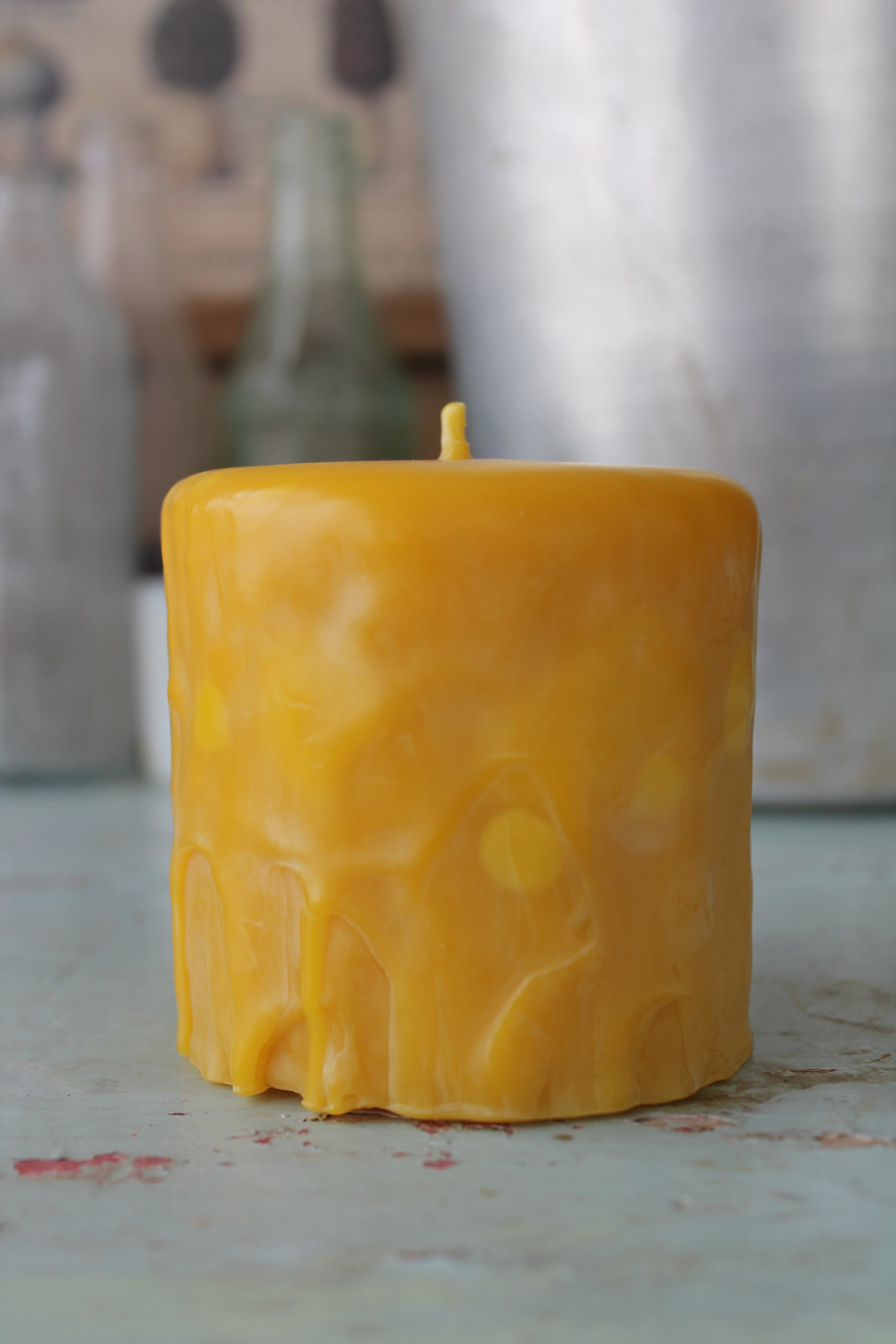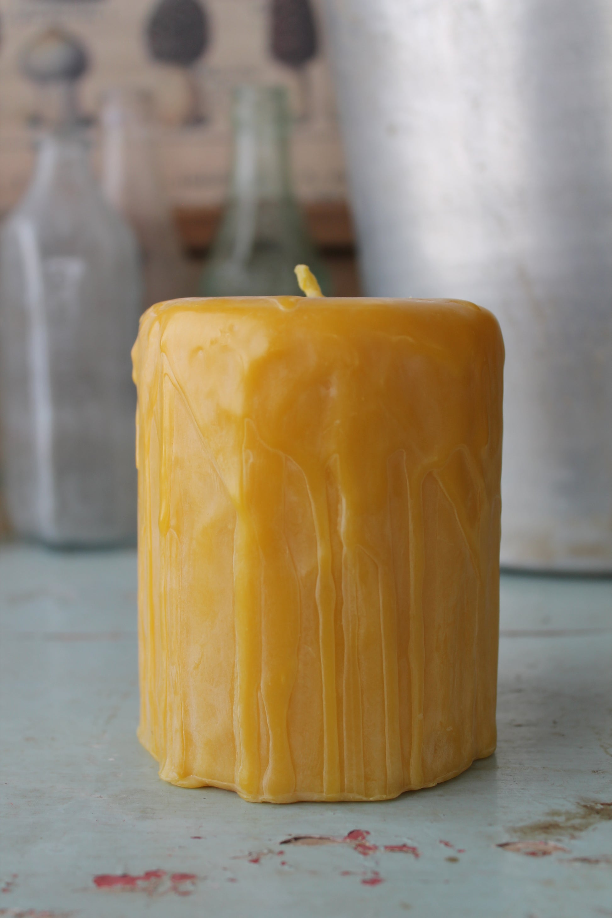 These pillars have been dripped and dipped into beeswax to create a rustic texture. Every candle has been individually crafted in small batches so that each one has its own unique drippy appearance. Because each candle has been created in this way, candle weight and width may slightly very.