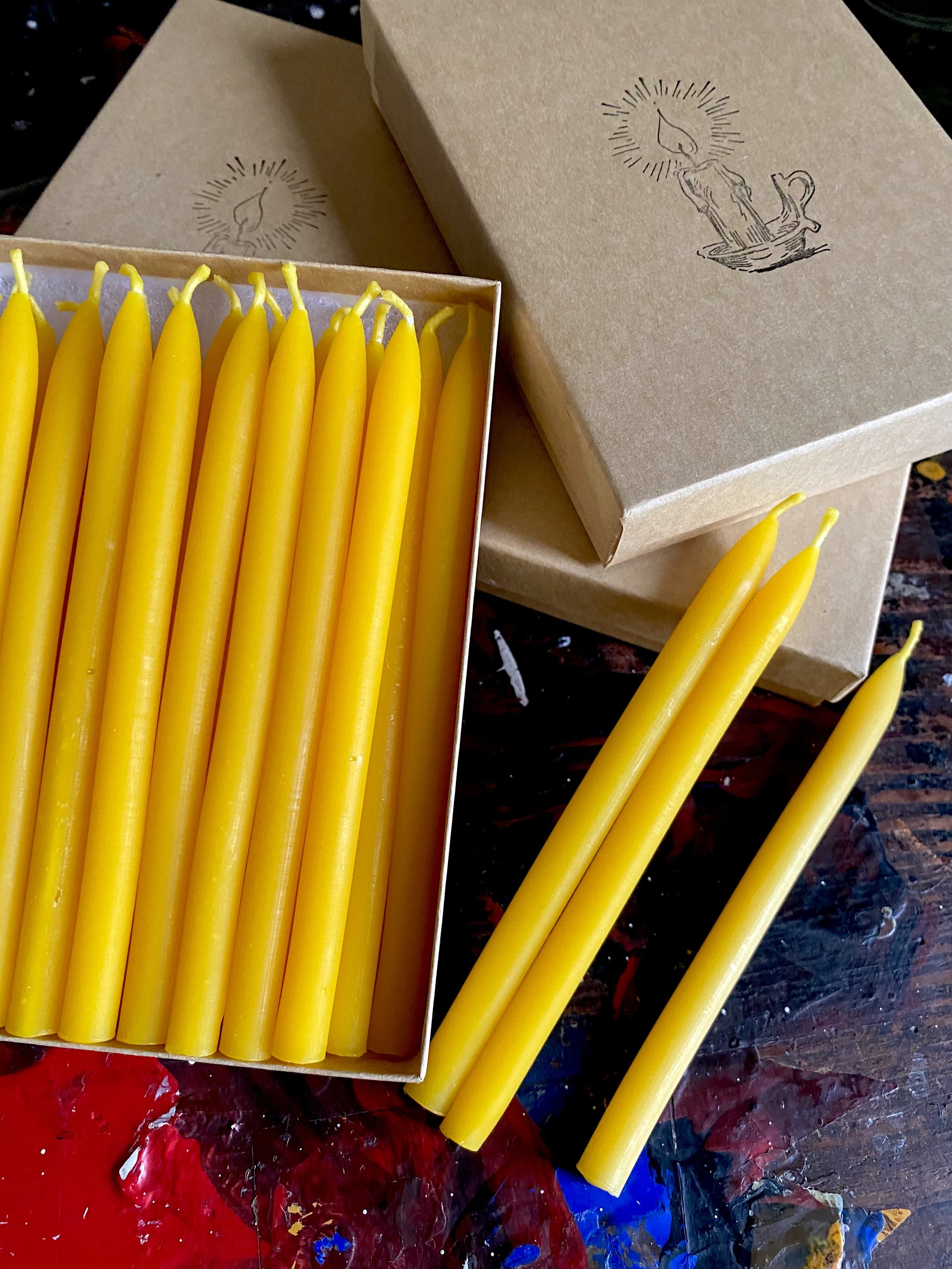 Our candles are made of 100% pure New York beeswax. We work with 5 local beekeepers that take excellent care of their apiaries to ensure that we are supporting happy and healthy bees. We only use American made, lead free cotton wicks.