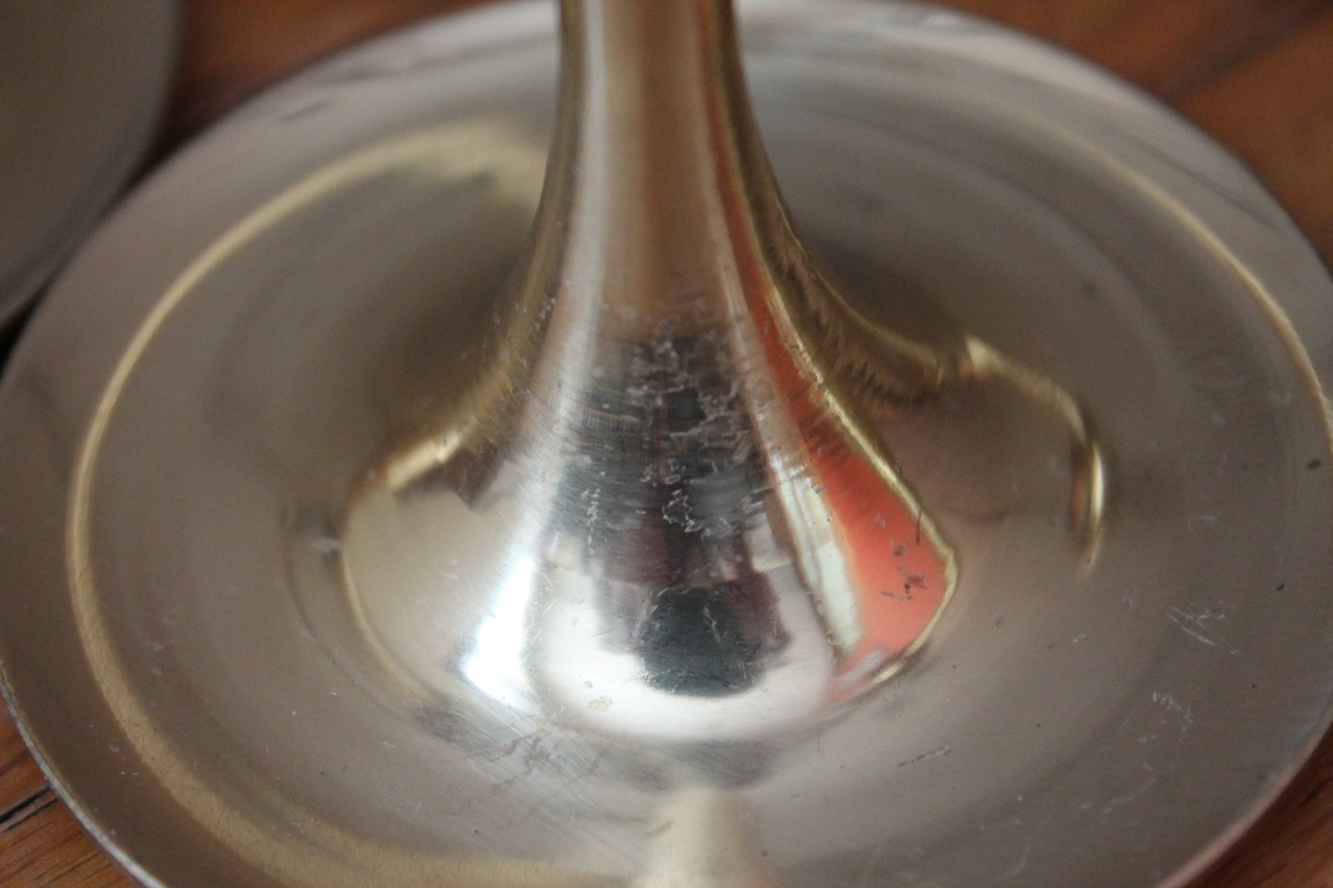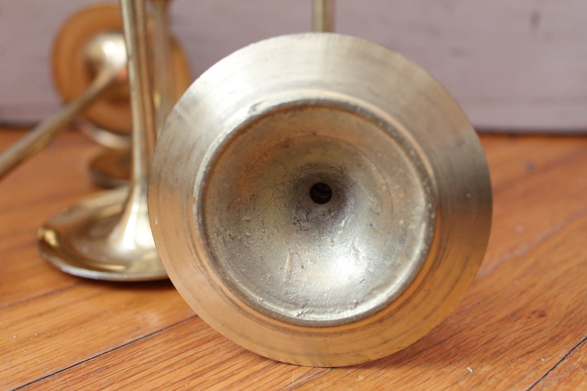 Set of 5 Brass candle stick holders. These are in used condition with some minor blemishes.